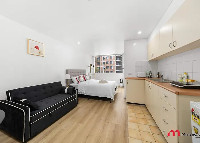 Om van uw vakantie in Sydney te genieten, verblijf in Metawise Bnb Bright 1Bed Studio Near Kings Cross - Bay 6 Sydney van 20 m², gelegen op 25 minuten wandelen van Het Domein en binnen 2 km van Opera van Sydney.